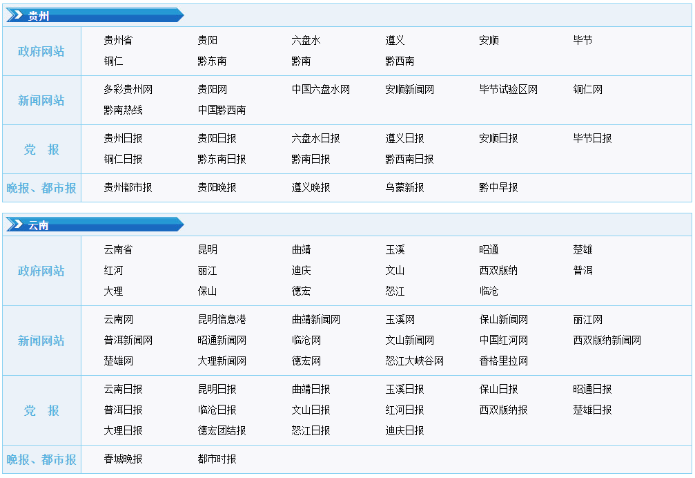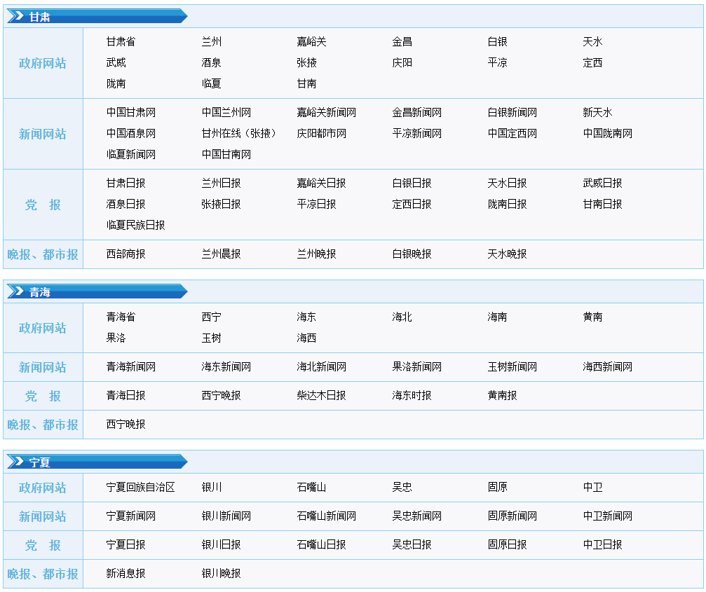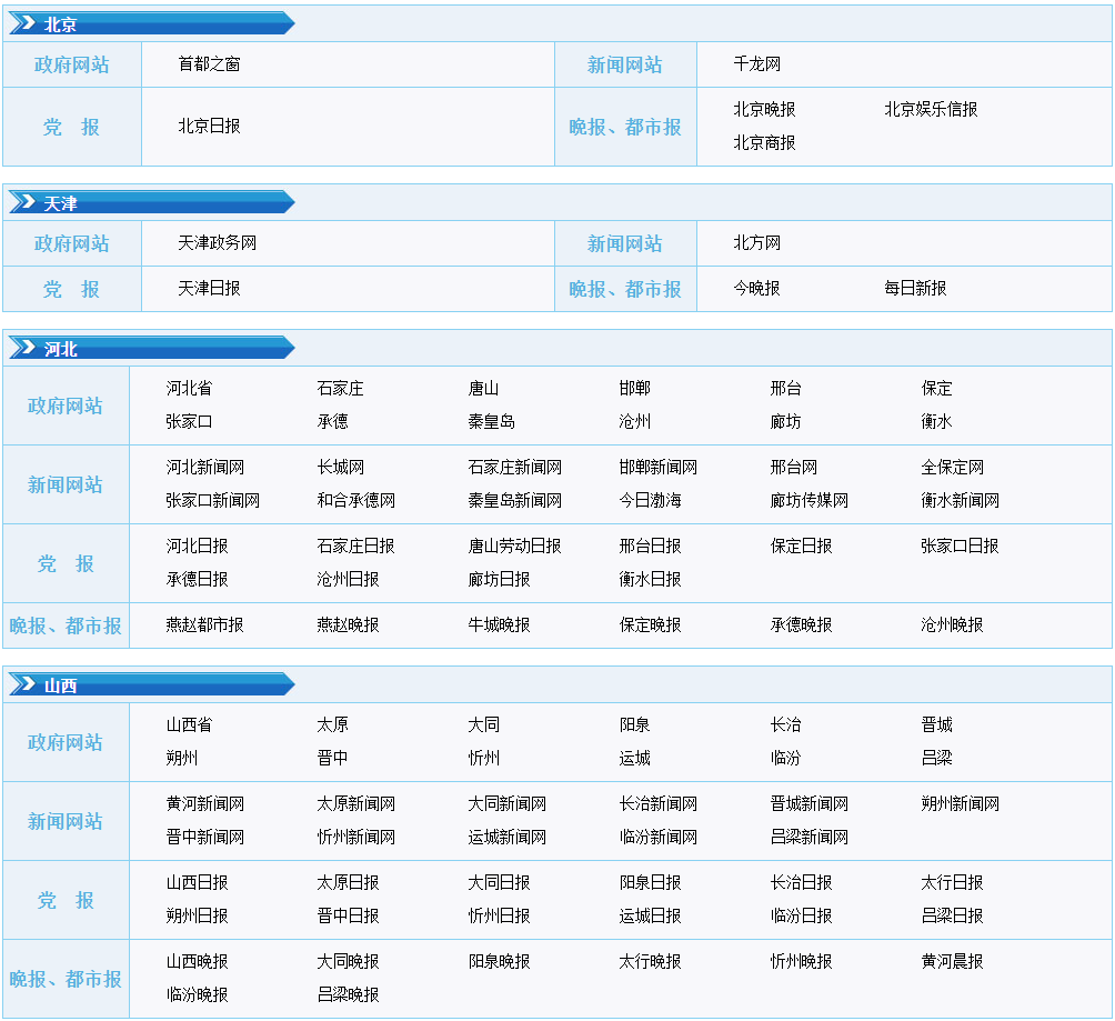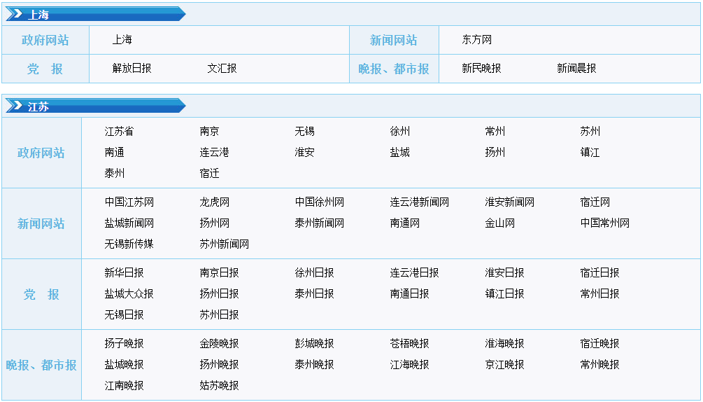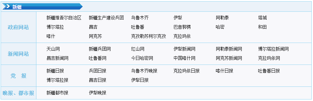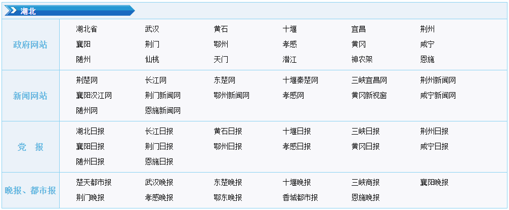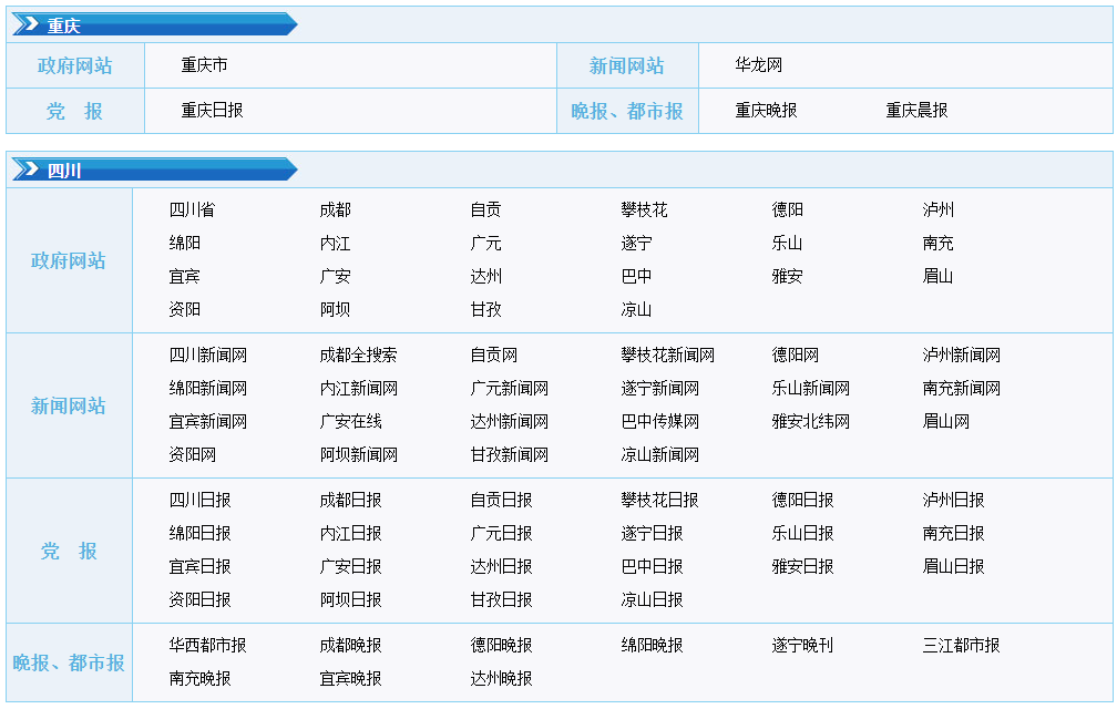 > 地方重點新聞平臺、政府網站、黨報、晚報一覽表