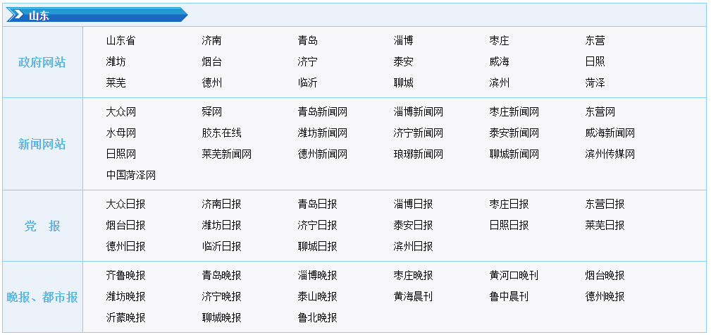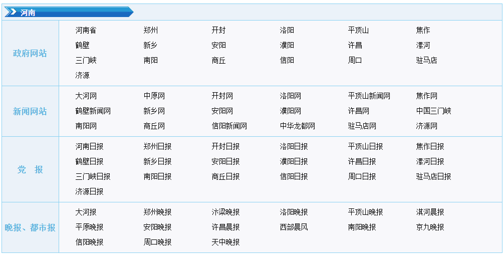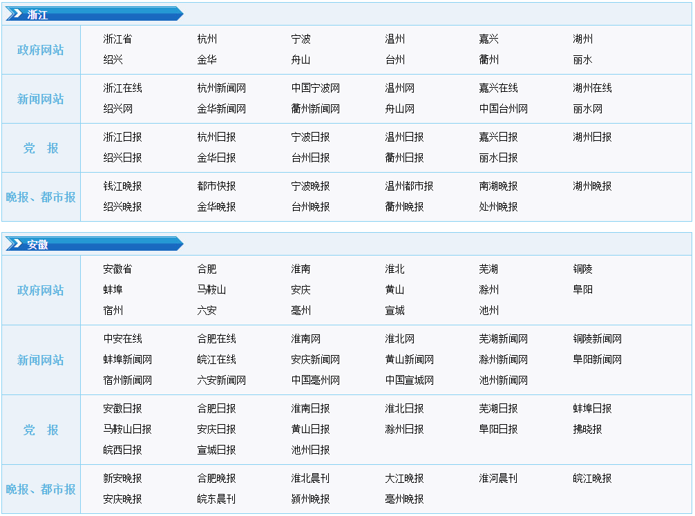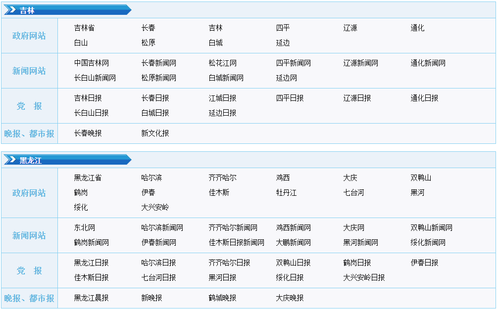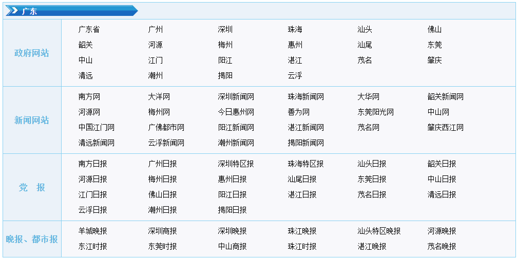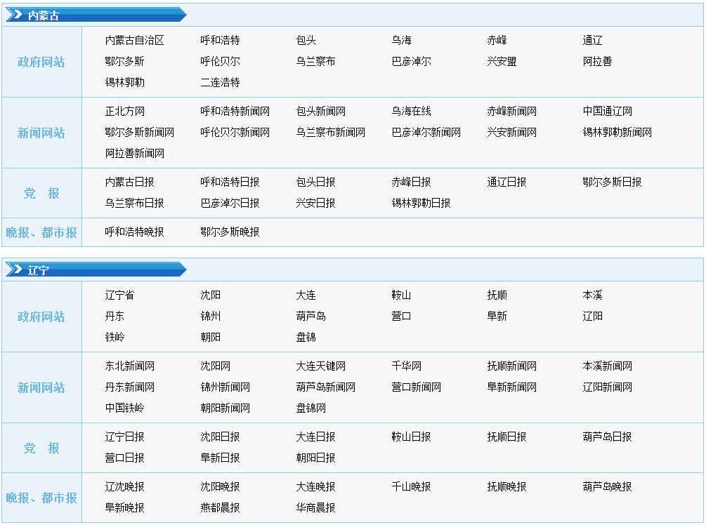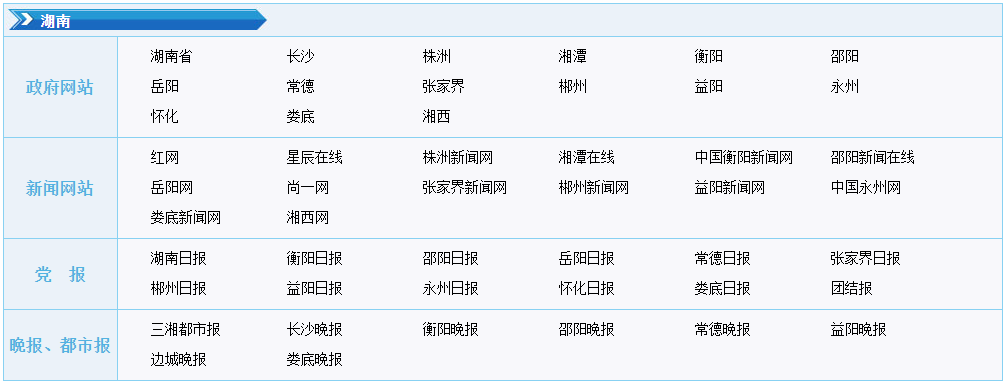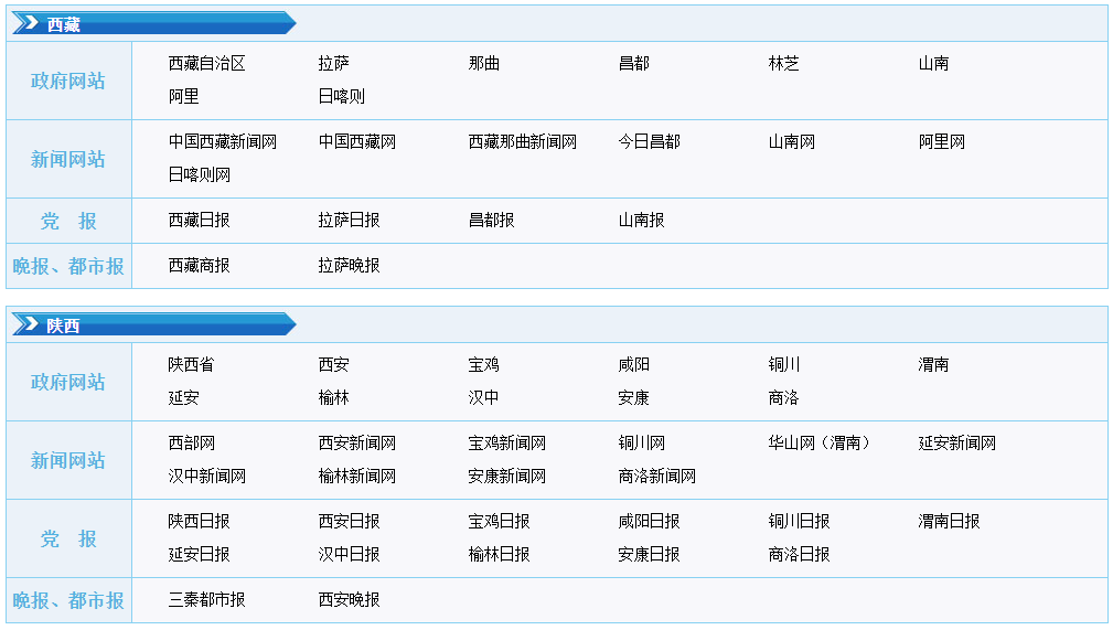 > 地方重點新聞平臺、政府網站、黨報、晚報一覽表