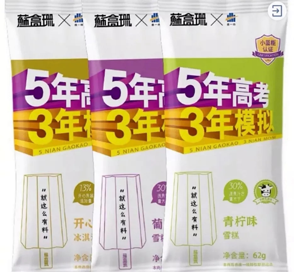一開始還以為是哪個(gè)小品牌在炒作,沒想到是經(jīng)五三官方許可的正規(guī)聯(lián)名雪糕。該雪糕品牌蘇盒珊甚至還表示:考慮推出雪糕與“五三”積分互換活動(dòng),即買蛋糕,積分換五三真題,積分換雪糕。雪糕雖好吃,多吃需謹(jǐn)慎。因?yàn)槊慷喑詭赘└猓陀锌赡苄枰嘧鲆槐疚迥旮呖既昴M,好家伙,完美地抑制了吃雪糕的欲望。