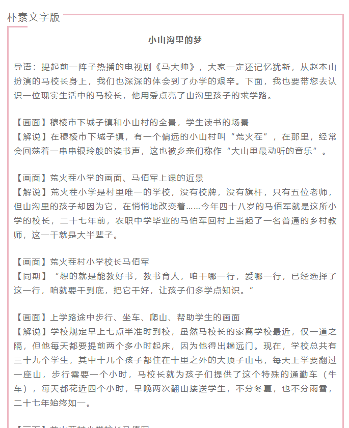 需要注意的是,電視新聞稿并非平鋪直敘,也是要有標題、導語、主體、結尾,層層遞進的過程。