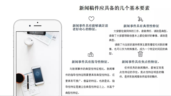 熟悉新聞體裁的寫作結構。新聞要素不可忽略5W1H,即為what(何事)、who(何人)、when(何時)、where(何地)、why(何故)、how(如何)。新聞稿必須起到紀實的作用,所以新聞的相關要素要交代清楚。