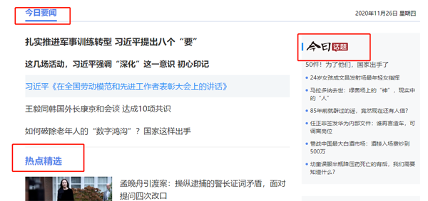 通過一些比較主流的新聞網站頭條、特點的關注,獲取新聞素材: