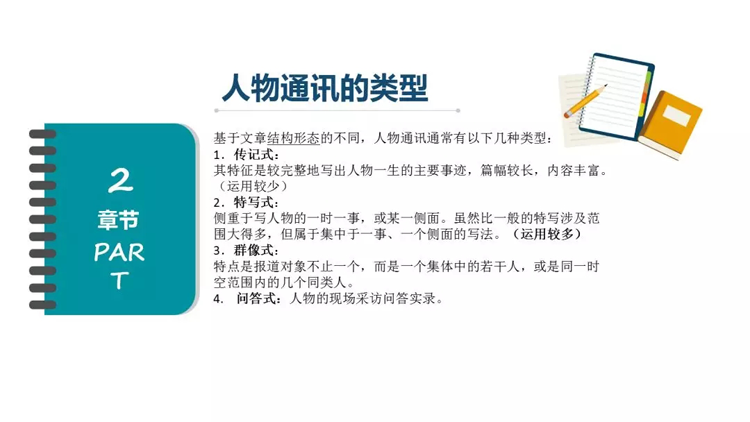 基于文章結構形態的不同,人物通訊通常有以下幾種類型: