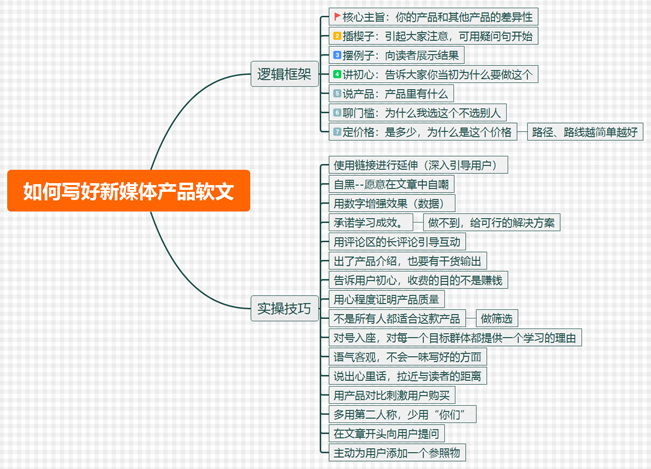 二、寫好產品軟文的7個邏輯框架和16個實操技巧思維導圖格式如下: