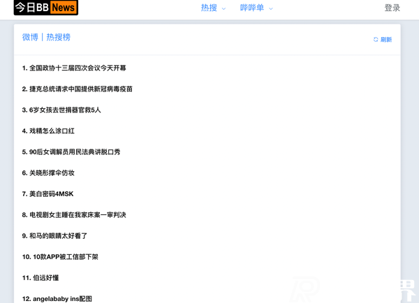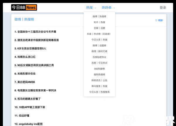 一個(gè)非常清爽簡約的熱點(diǎn)聚合網(wǎng)站,名字很好記,熱點(diǎn)內(nèi)容會(huì)自動(dòng)展示在首頁,你可以根據(jù)自己的興趣愛好查看熱搜的分類,它還有一個(gè)自己的話題榜單。