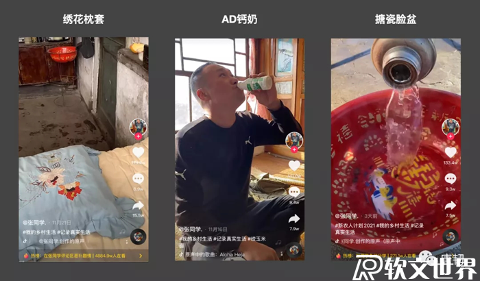 其次,張同學(xué)的樸實(shí)農(nóng)村生活內(nèi)容也和抖音大多數(shù)的內(nèi)容形成了鮮明的對(duì)比,這種反主流色彩極大拓展了抖音的內(nèi)容邊界,這也是抖音需要的。