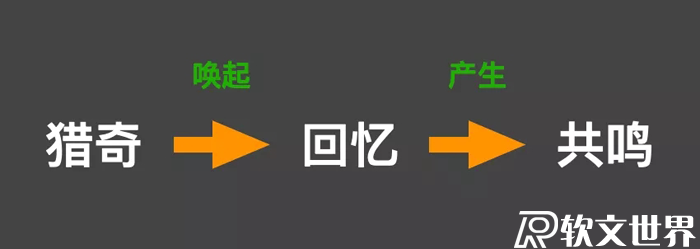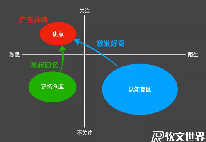 所以,通過喚起回憶的方式從記憶倉庫往焦點(diǎn)區(qū)轉(zhuǎn)移,通過激發(fā)好奇的方式從認(rèn)知盲區(qū)往焦點(diǎn)區(qū)跨越,共同實(shí)現(xiàn)了共鳴效果。