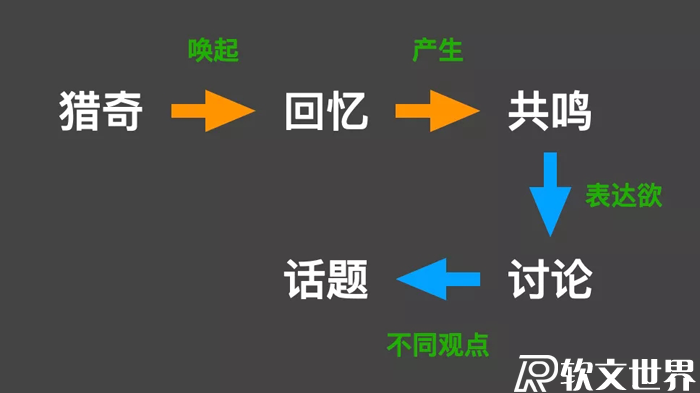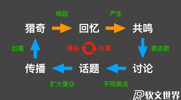 增長引擎會(huì)自發(fā)運(yùn)轉(zhuǎn),只要不斷有新的人進(jìn)來獵奇,就會(huì)更多喚起回憶、產(chǎn)生共鳴、激發(fā)表達(dá)欲、形成討論、形成不同觀點(diǎn)、構(gòu)建話題、擴(kuò)大受眾、開始傳播、出圈。