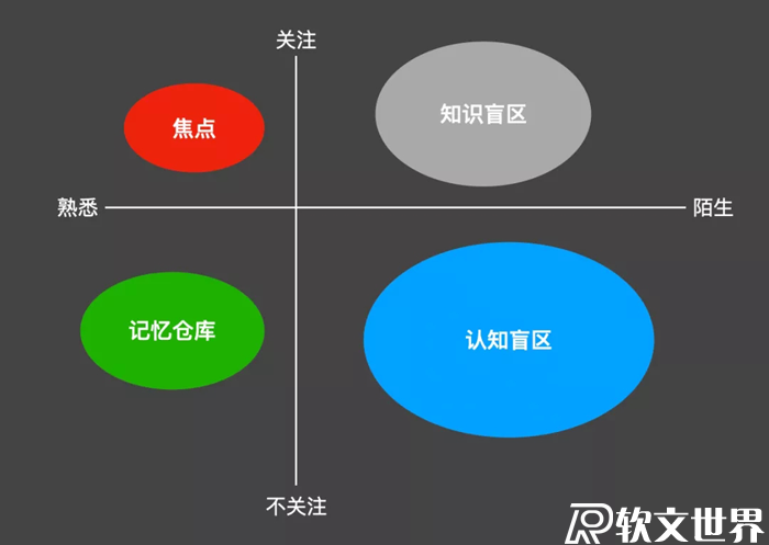 對(duì)于我們大部分人來說,我們的注意力都聚焦在自己熟悉且關(guān)注的事物上,也就是圖中的焦點(diǎn)區(qū),這是我們花時(shí)間花精力的地方。