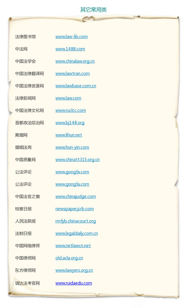 涉及民商法、知識產權法、訴訟法、判決書、法條、司法機關、高校網站等數十個類目……不管是實務還是考試,都能用的到!轉發+收藏,法律路上再也不發愁"
