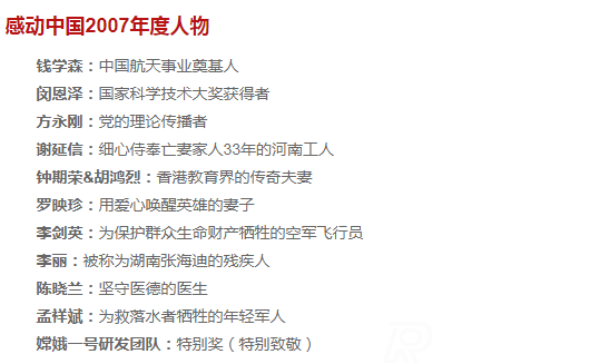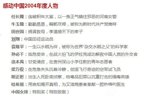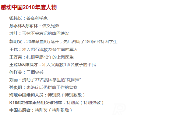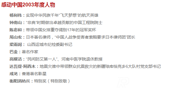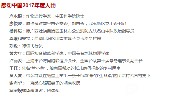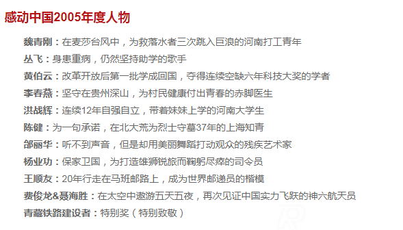 《感動中國》是中央電視臺綜合頻道打造的一個精神品牌欄目,被媒體譽為“中國人的年度精神史詩”,該欄目由新聞中心社會專題部活動直播組承辦,于每年元宵節(jié)前后推出,通過多種投票方式選取年度具有震撼人心、令人感動的人物和團隊,感動中國十大人物都有哪些呢?以下是歷年感動中國年度人物名單匯總,一起來看!