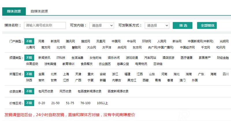 媒體資源廣泛,包含新聞源媒體、大型門戶網(wǎng)站、當下熱門的自媒體等等,部分媒體還能包收錄、包二維碼、鏈接等。