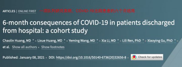 2020年6月—9月,他們觀察1733例新冠患者出院后的癥狀。