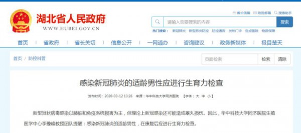 感染新冠肺炎的適齡男性,在康復(fù)后應(yīng)進(jìn)行生育力檢查。