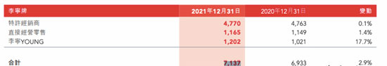 不久前,李寧公布了2021年全年業(yè)績報(bào)告:公司營收超200億元,同比增長56%;凈利潤達(dá)到40億元,同比增長了136.1%。門店數(shù)量方面,截止至2021年底,李寧共有7137家門店,凈增204家,其中,李寧品牌共有5935家;李寧YOUNG共有1202家。