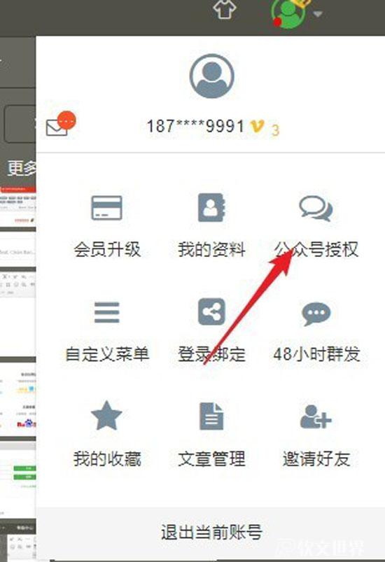 4.同步后的文章并沒有發送出去,而是出現在微信公眾平臺的素材管理里面,點擊編輯器右上角的“公眾號授權”即可進入微信公眾號。
