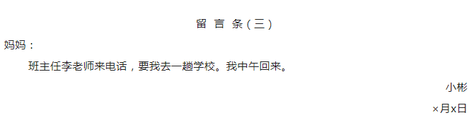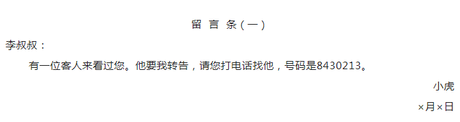 因事出門,給家人留言。交待回來時間,讓家人放心。