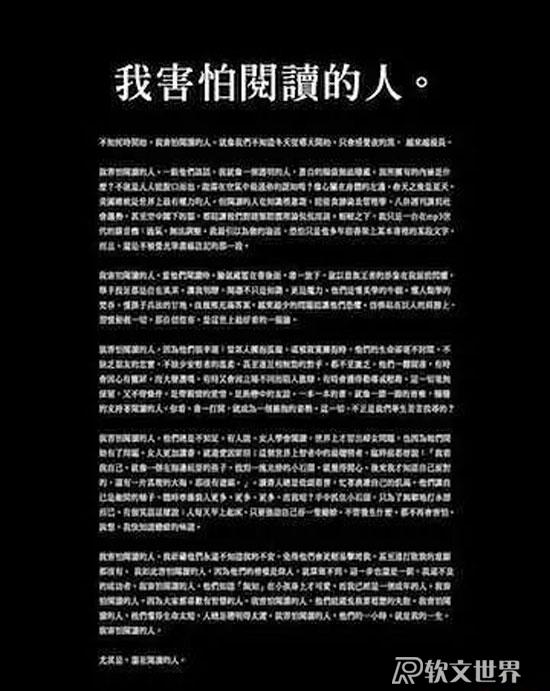 經典文案《我害怕閱讀的人》就是通過第一人稱“我”,給讀者娓娓道來。