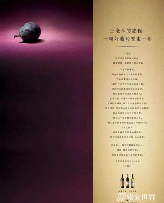 經典的長城葡萄酒文案,也是使用的具象化策略。