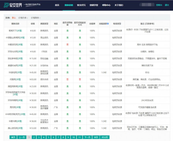 可以看到不同媒體的價(jià)格差異挺大的,如果是發(fā)普通的門(mén)戶(hù)網(wǎng)站,一般50-200元左右的價(jià)格就可以發(fā)布到一家不錯(cuò)的媒體。