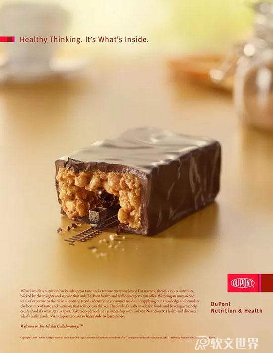 奧美紐約曾攜手Ars Thanea工作室,共同為美國杜邦營養與健康事業部(DuPont Nutrition and nd Health)打造了一組創意廣告“It’s What’s Inside”。這組平面上分別有面包、奶酪、烤肉、巧克力、果汁、火腿棒等美味,畫面上看上去不僅誘人,還都在食物上有著一扇門讓好奇者們可以一探究竟。