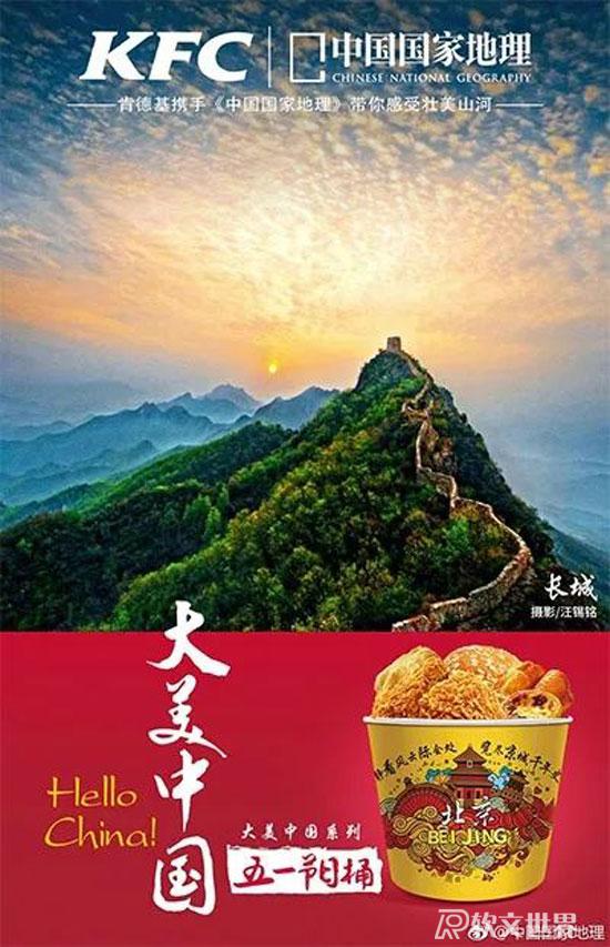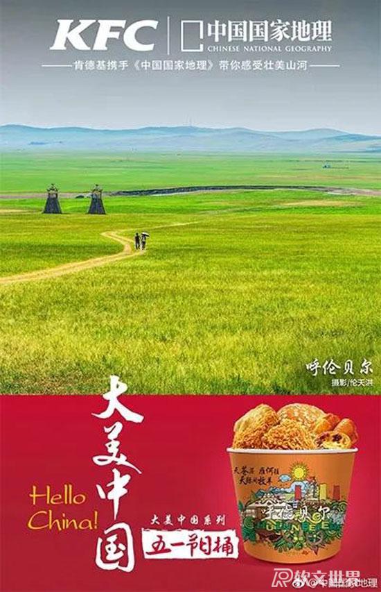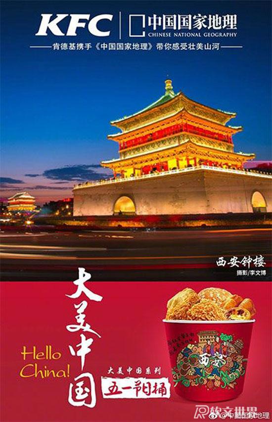 2017年4月22日至5月1日。中國國家地理攜手肯德基在全國百家門店舉行#Hello大美中國#跨界攝影展。這個五一節日桶是肯德基史上最強大的包裝陣容,有8款之多,地區橫跨祖國的大江南北,而且每個城市的節日桶只有當地有售,想要集齊8款你就要走遍全國,聽上去簡直比七龍珠還刺激!