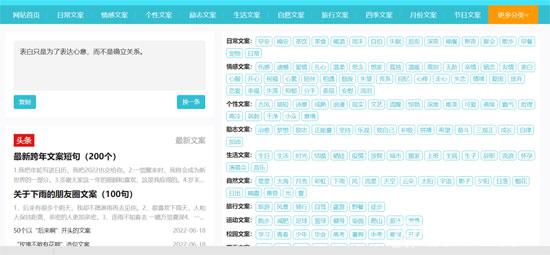 文案網收集了很多的文案句子,并且做好了分類,比如:日常、情感、生活、自然、節氣、節日等等,非常方便大家查找自己需要的文案。