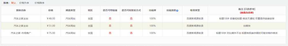 汽車之家發(fā)稿的價(jià)格和頻道: