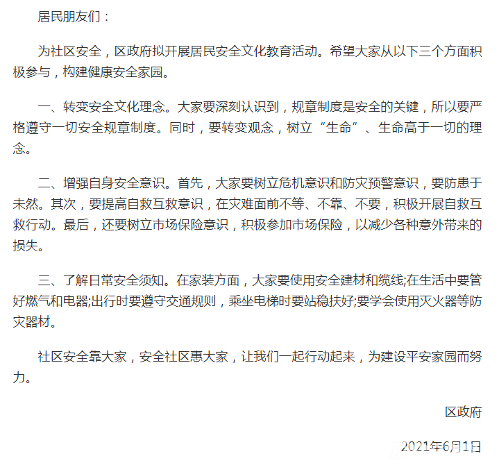 一般在第三行空兩格寫正文,包括以下內容:宣傳事由+宣傳內容+呼吁號召。