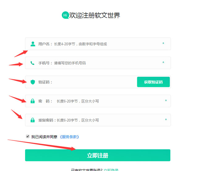 步驟二、在軟文世界注冊(cè)頁面,填寫用戶信息;