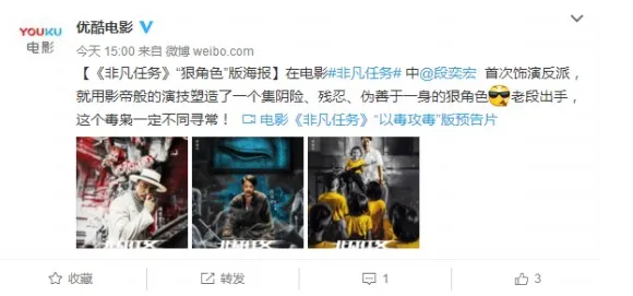 海報是挺有沖擊力的,然而文案寡淡無味,就是一段人物介紹,網友根本找不到任何興趣點,看這可憐的轉發率就知道這個廣告是白打的。