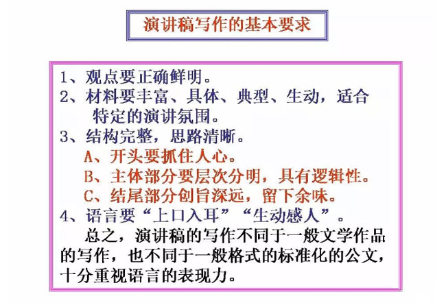 如果想自己寫,也可以先了解一下演講稿的寫作格式以及寫作特點,在這里軟文世界分享一下技巧。