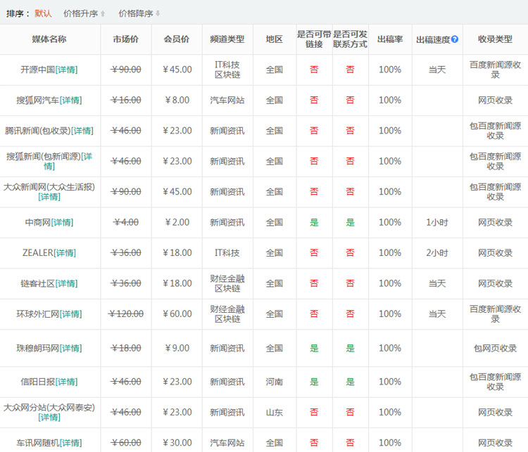 上面都是軟文世界新聞發稿平臺的媒體實時報價。登錄賬號可查看詳細價格